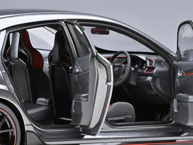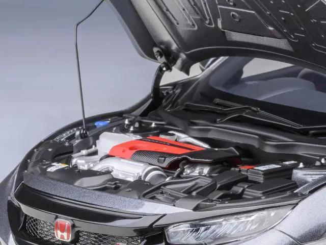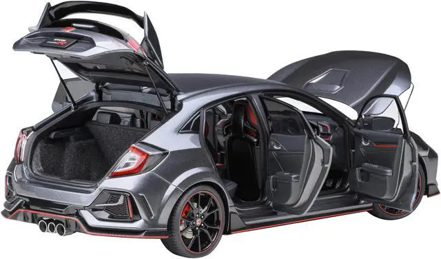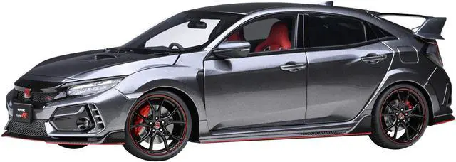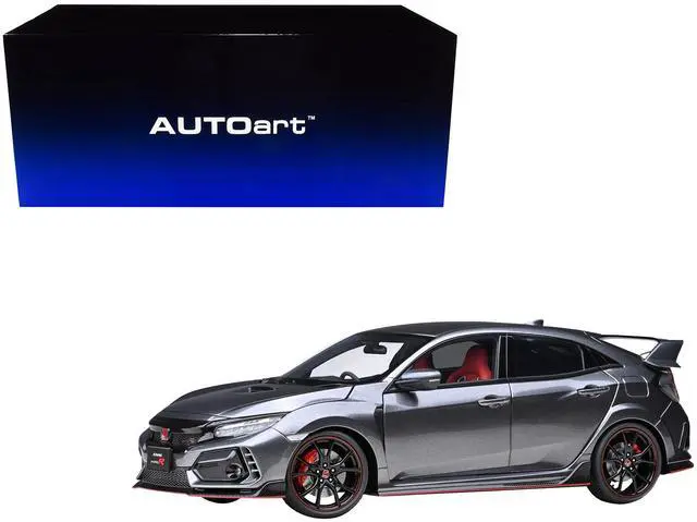 Brand new 1/18 scale model car of 2021 Honda Civic Type R (FK8) RHD (Right Hand Drive) Polished Metal Gray Metallic car model by Autoart.