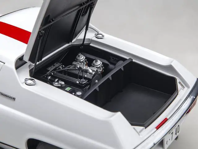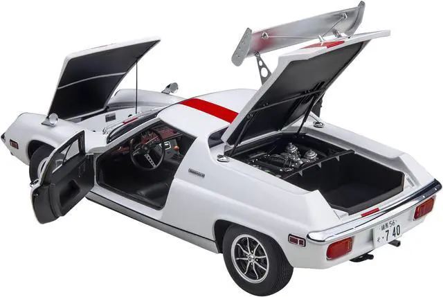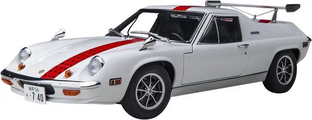 Brand new 1/18 scale car model of Lotus Europa Special White with Red Stripe and Graphics "The Circuit Wolf" model car by Autoart.