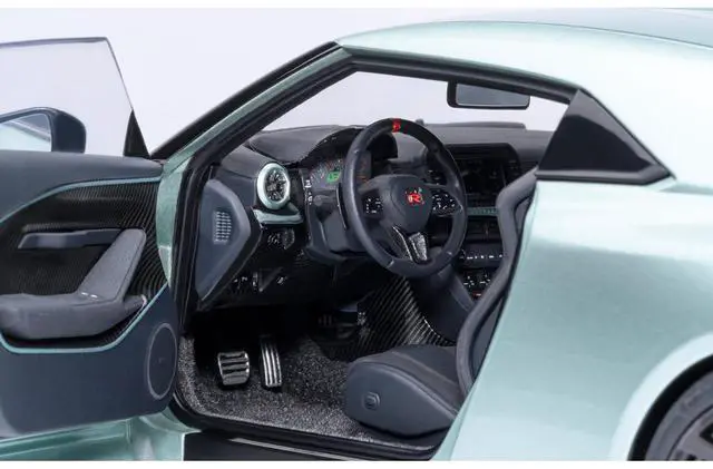 Brand new 1/18 scale car model of Nissan GT-R50 By ItalDesign Green Metallic and Black model car by Autoart.