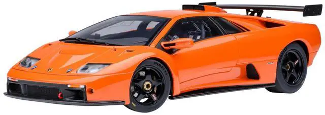 Brand new 1/18 scale car model of Lamborghini Diablo GTR Arancio Ishtar Orange model car by Autoart.