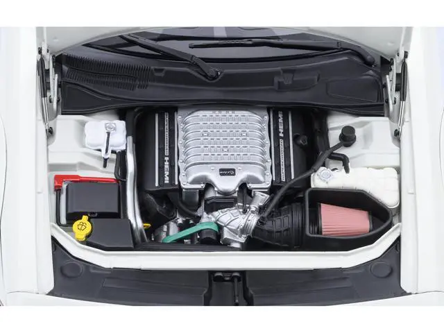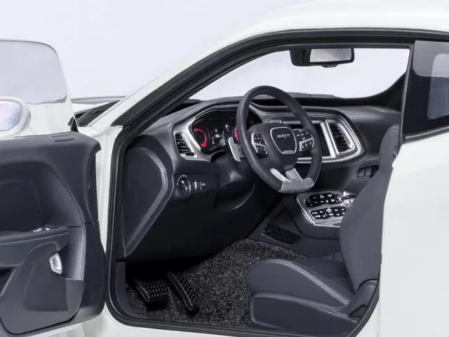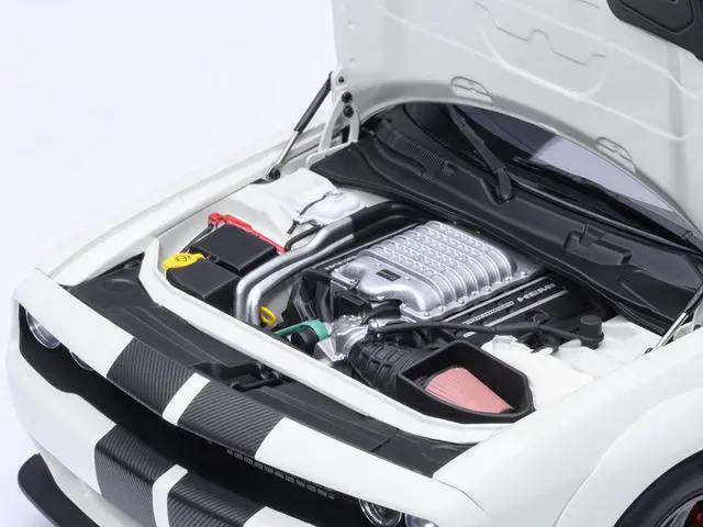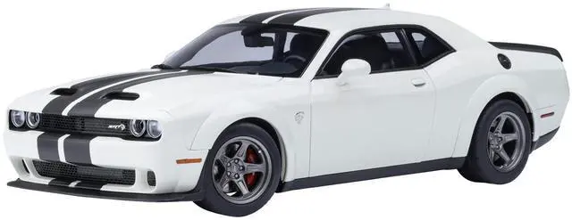 Brand new 1/18 scale model car of 2023 Dodge Challenger SRT Super Stock Knuckle White with Carbon Stripes car model by Autoart.