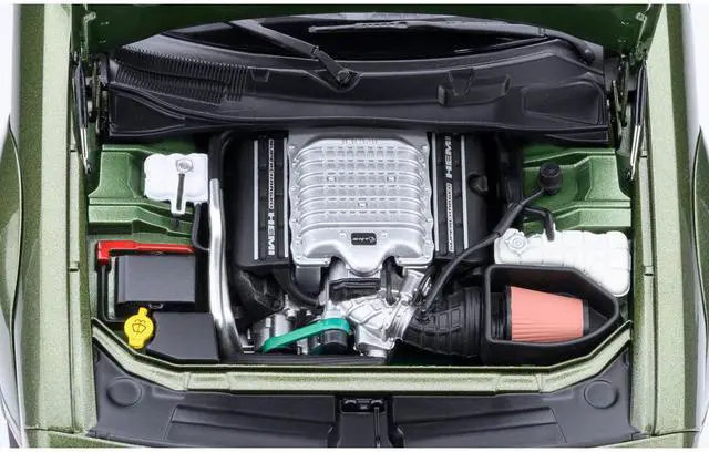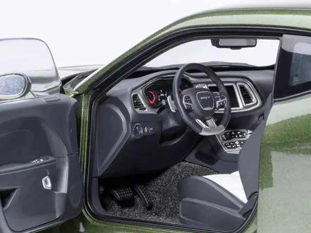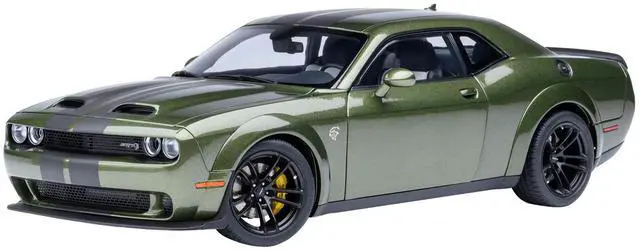 Brand new 1/18 scale model car of 2022 Dodge Challenger SRT Jailbreak F8 Green with Carbon Stripes car model by Autoart.