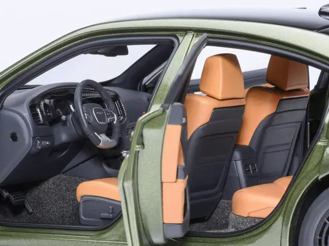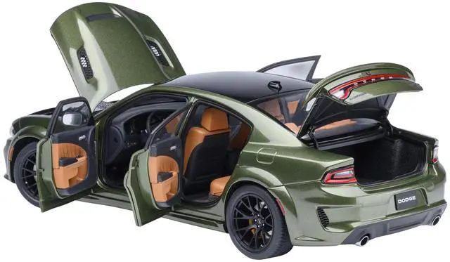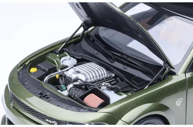 Brand new 1/18 scale model car of Dodge Charger SRT Hellcat Redeye F8 Green Metallic with Matt Black Top car model by Autoart.