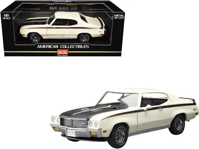 Brand new 1/18 scale diecast car model of 1970 Buick GSX Apollo White with Black Stripes "American Collectibles" Series die cast model car by Sun Star.