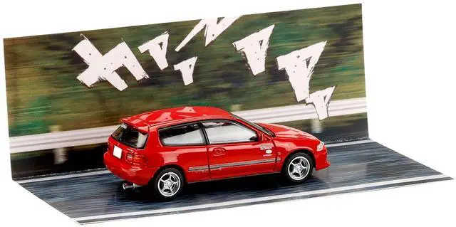 Brand new 1/64 scale diecast model car of Honda Civic (EG6) RHD (Right Hand Drive) "Myogi Night Kids" Red "Initial D" (1995-2013) Manga "Diorama Set Series" die cast model car by Hobby Japan.