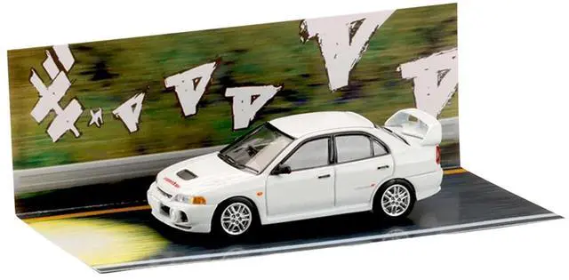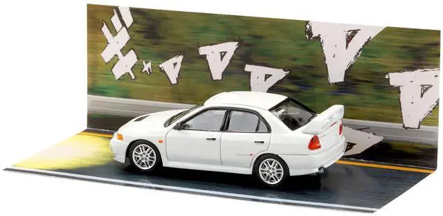 Brand new 1/64 scale diecast model car of Mitsubishi Lancer RS Evolution IV RHD (Right Hand Drive) "MonStar" White "Initial D" (1995-2013) Manga "Diorama Set Series" die cast model car by Hobby Japan.