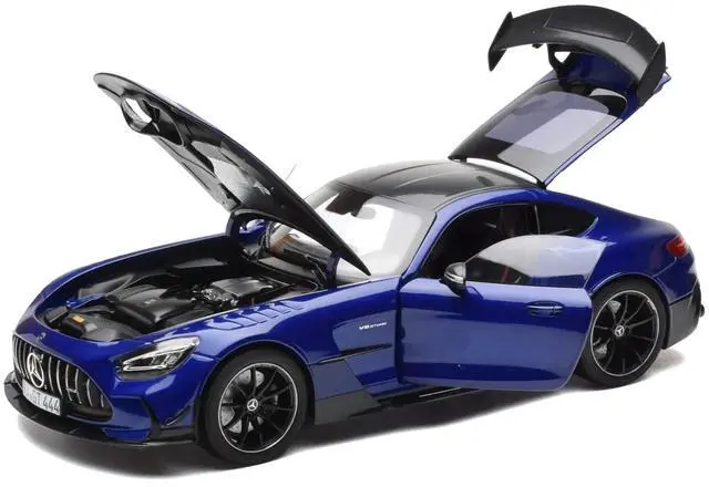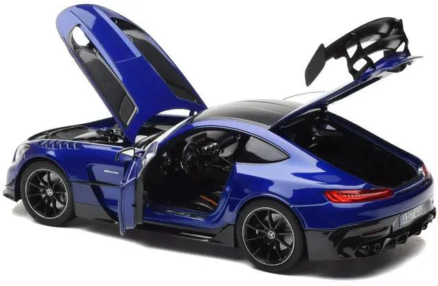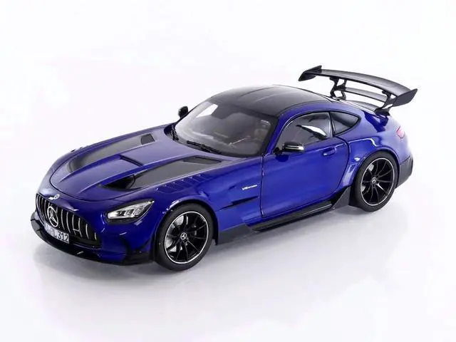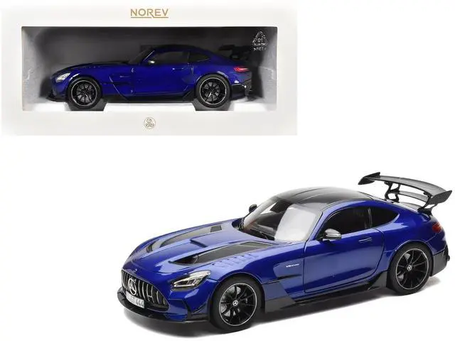 Brand new 1/18 scale diecast car model of 2021 Mercedes-Benz AMG GT Black Series Blue Metallic with Carbon Top and Hood Stripes die cast model car by Norev.