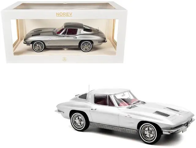 1963 Chevrolet Corvette Sting Ray Sebring Silver Metallic with Red Interior 1/18 Diecast Model Car by Norev