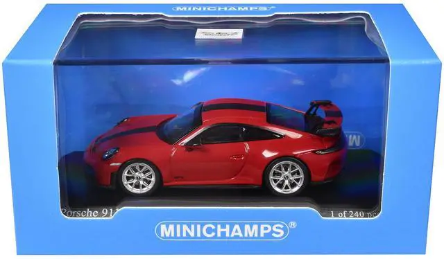 Brand new 1/64 scale diecast car model of 2025 Porsche 911 ( 992.2 ) GT3 Weissach Package Red with Carbon Stripe Limited Edition to 240 pieces Worldwide die cast model car by Minichamps.