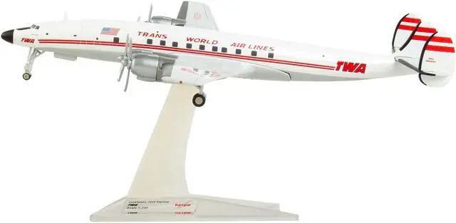 Brand new 1/200 scale diecast airplane model of Lockheed L-1649A Jetstream Commercial Aircraft "TWA (Trans World Airlines) " (N8083H) White with Red Stripes die cast model by Herpa.