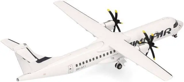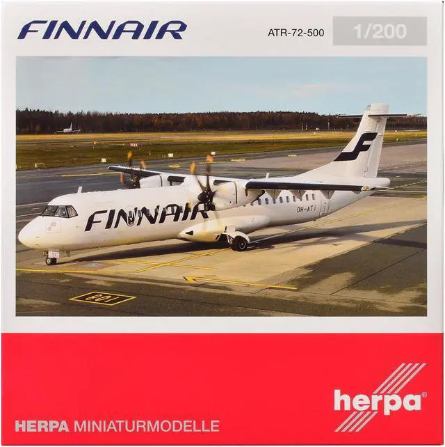 Brand new 1/200 scale diecast airplane model of ATR 72-500 Commercial Aircraft "FinnAir" (OH-ATI) White die cast model by Herpa.