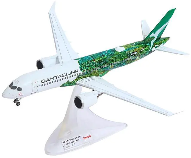 Brand new 1/200 scale diecast airplane model of Airbus A220-300 Commercial Aircraft "QantasLink Flying Art Series - Minyma Kutjara Tjukurpa" (VH-X4A) White with Green Graphics die cast model by Herpa.