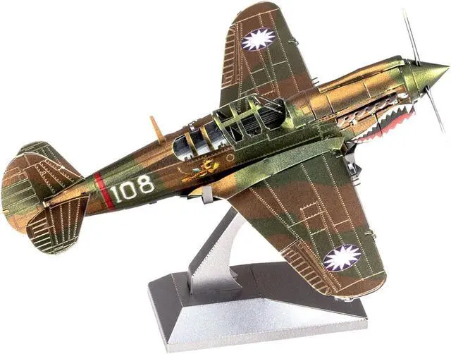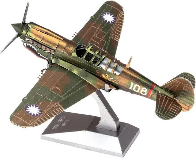 Model Kit Curtiss P-40 Warhawk Fighter-Bomber Aircraft "American Volunteer Group Chinese Air Force" 1/88 Steel Model by Metal Earth