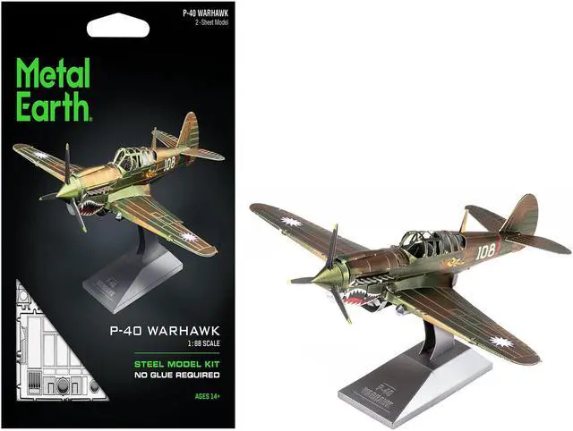Brand new Curtiss P-40 Warhawk Fighter-Bomber Aircraft "American Volunteer Group (AVG) Chinese Air Force" (Moderate Difficulty) Steel Model Kit by Metal Earth.