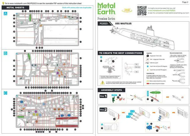 Brand new USS Nautilus (SSN-571) Submarine "United States Navy" (Challenging Difficulty) Steel Model Kit by Metal Earth.
