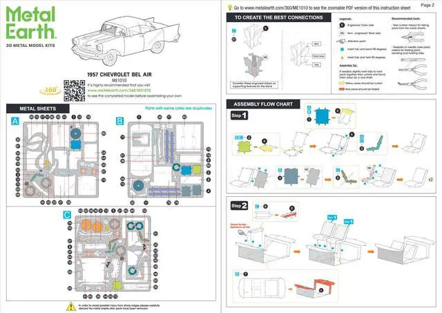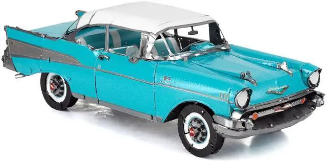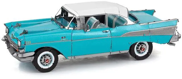 Brand new 1957 Chevrolet Bel Air Turquoise with White Top (Challenging Difficulty) Steel Model Kit by Metal Earth.