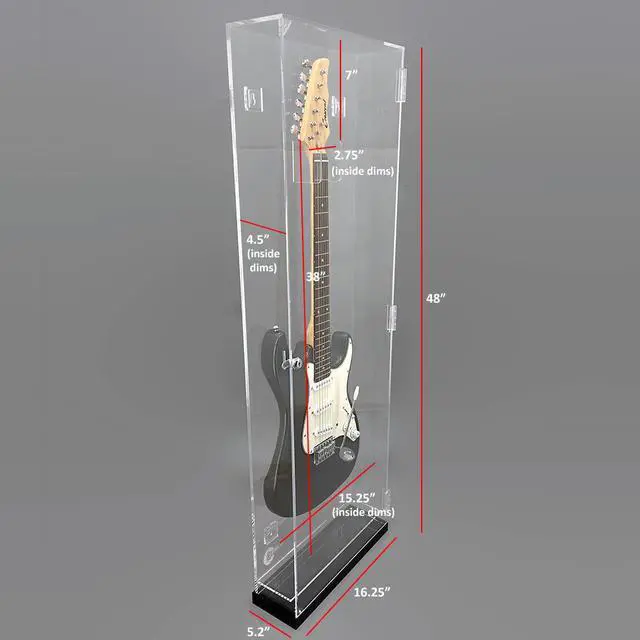 The ultimate display case for your electric guitar is here. Perfect for the man cave or office as an amazing way to show off your Jimi Hendrix autograph. Our OnDisplay guitar display cases are a necessity for any true music memorabilia enthusiast. Protect your investments and collectibles with our handmade UV-protected Ultra clear 6mm (4mm door) thick acrylic cabinet. Your memorabilia will be free of dust and will be protected from fading with our highest end display cases. Each 100% acrylic display case is hand-made and includes a locking magnetic cabinet door with 2 keys.