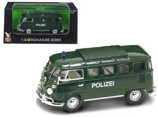 Brand new 1/43 scale diecast car model of 1962 Volkswagen Microbus Police Green die cast model car by Road Signature.