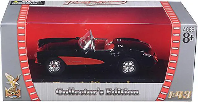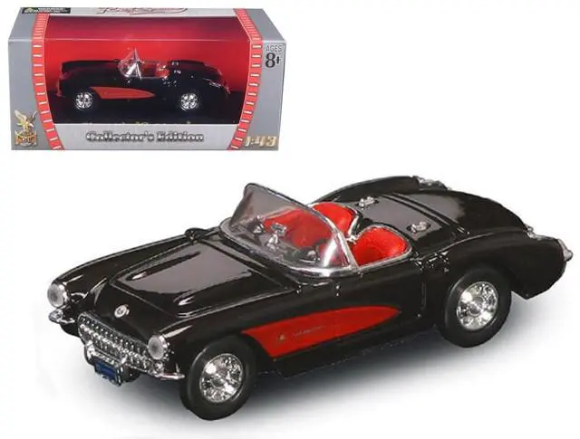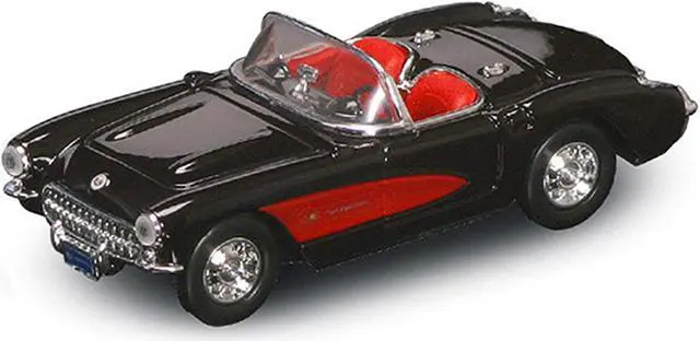 Brand new 1/43 scale diecast car model of 1957 Chevrolet Corvette Convertible Black die cast model car by Road Signature.