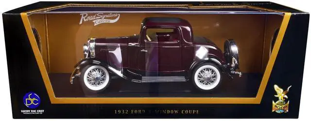 Brand new 1/18 scale diecast car model of 1932 Ford 3-Window Coupe Burgundy with Black Top die cast car by Road Signature.