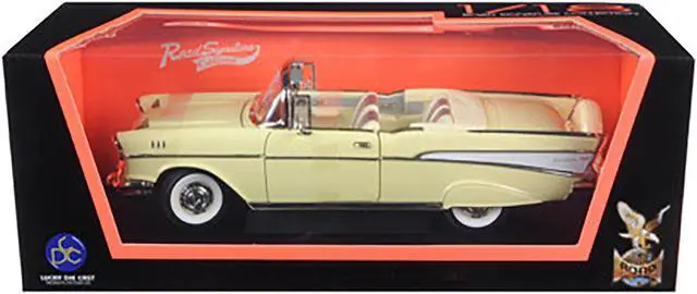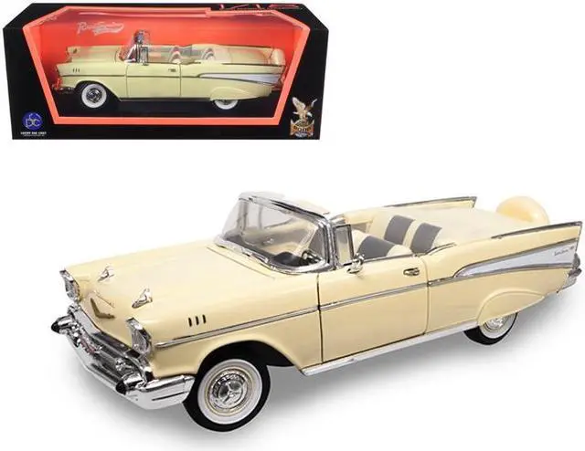 Brand new 1/18 scale diecast car model of 1957 Chevrolet Bel Air Convertible Cream die cast model car by Road Signature.