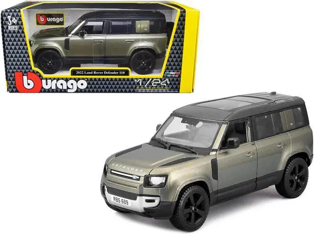 Brand new 1/24 scale diecast car model of 2022 Land Rover Defender 110 Green Metallic with Black Top and Sunroof die cast model car by Bburago.