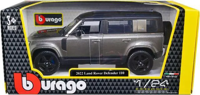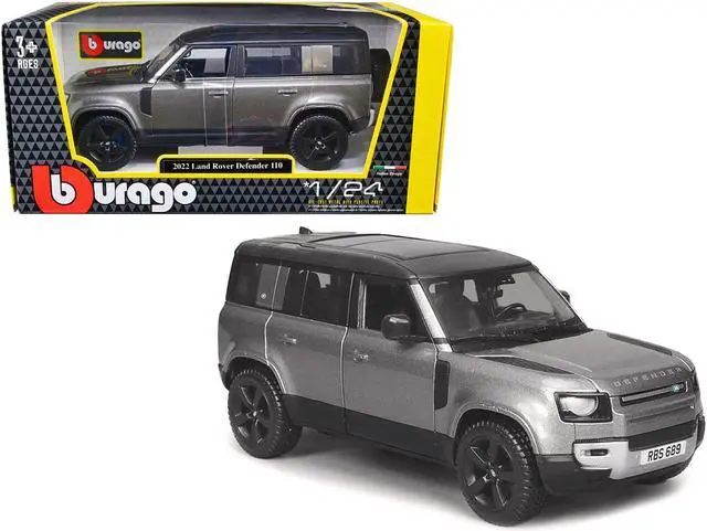 Brand new 1/24 scale diecast car model of 2022 Land Rover Defender 110 Dark Silver Metallic with Black Top and Sunroof die cast model car by Bburago.