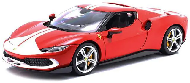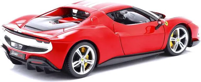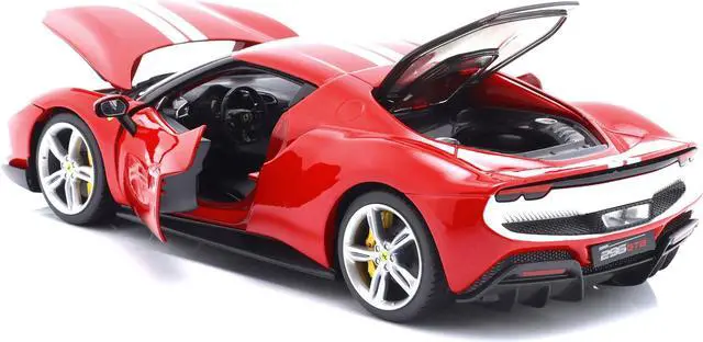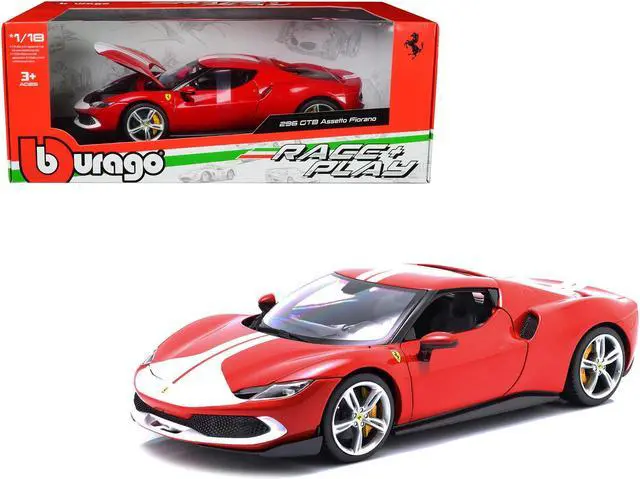 Brand new 1/18 scale diecast car model of Ferrari 296 GTB Assetto Fiorano Red with White Stripes "Race + Play" Series die cast model car by Bburago.