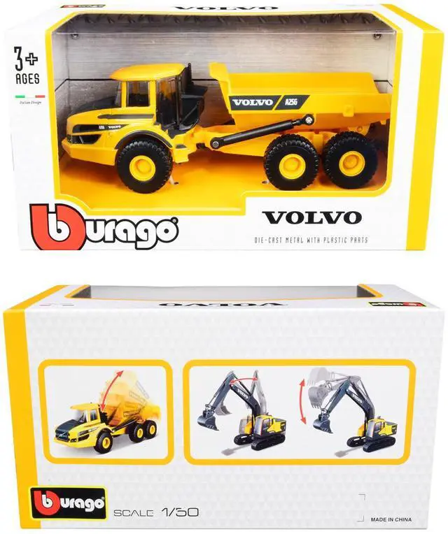 Brand new 1/50 scale diecast model of Volvo A25G Articulated Hauler Yellow die cast model by Bburago.