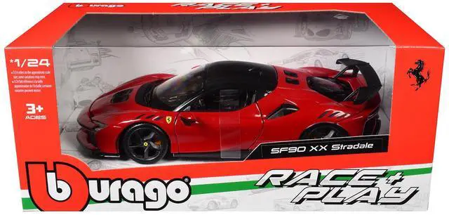 Brand new 1/24 scale diecast car model of Ferrari SF90 XX Stradale Red with Black Top "Race and Play" Series die cast model car by Bburago.