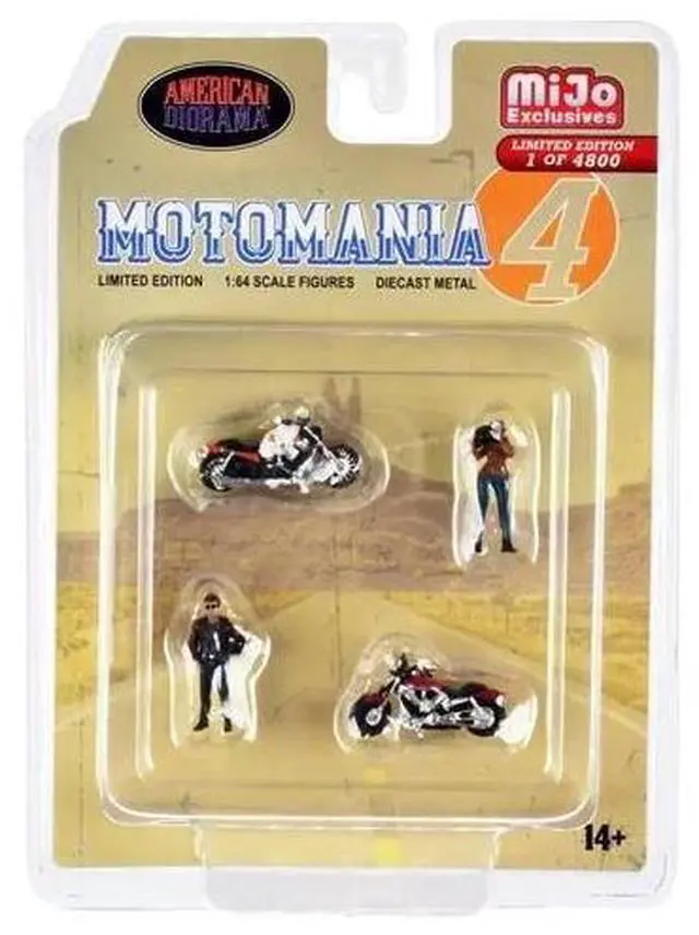 Brand new 1/64 scale diecast models of "Motomania 4" 4 piece Diecast Set (2 Figures and 2 Motorcycles) Limited Edition to 4800 pieces Worldwide for 1/64 scale models by American Diorama.
