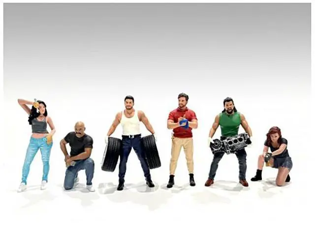 Brand new 1/24 scale models of "Muscle Mechanics" 6 piece Figure Set for 1/24 scale models by American Diorama.