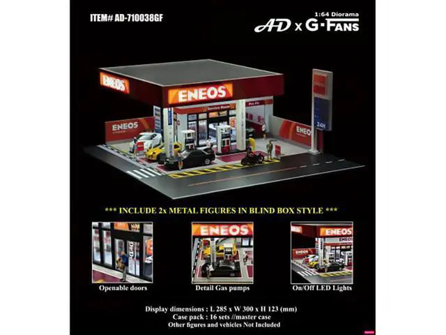 Brand new scale replica of Eneos Japan Gas Station Diorama Set "American Diorama X G-Fans" Series for 1/64 scale models by American Diorama.