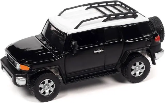 Brand new 1/64 scale diecast car model of 2007 Toyota FJ Cruiser Black Diamond with White Top and Roofrack "Classic Gold Collection" Series Limited Edition die cast model car by Johnny Lightning.