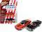 Brand new 1/64 scale diecast car models of 1969 Chevrolet Camaro Hugger Orange with Black Top and Stripes and 1967 Chevrolet Camaro Black with White Stripe and Red Interior "Yenko" Series Set of 2 Cars die cast model cars by Johnny Lightning.