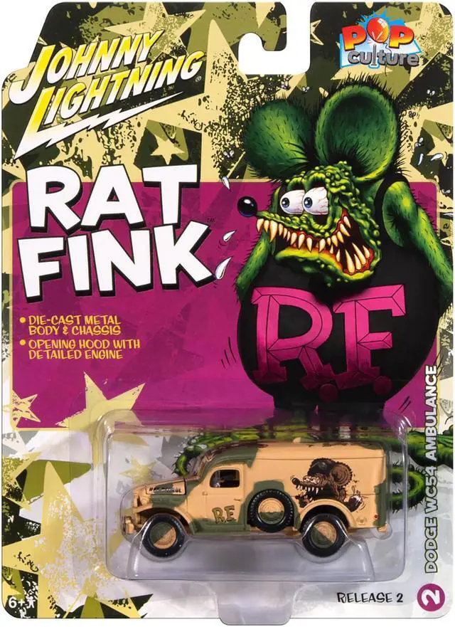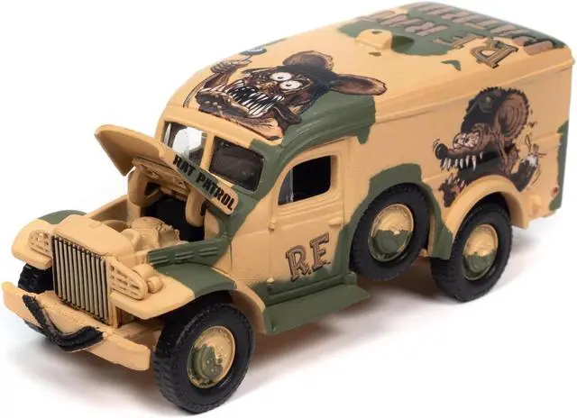 Brand new 1/64 scale diecast car model of Dodge WC54 Ambulance Desert Camouflage "Rat Fink" "Pop Culture" 2024 Release 2 die cast model car by Johnny Lightning.