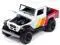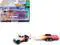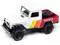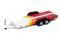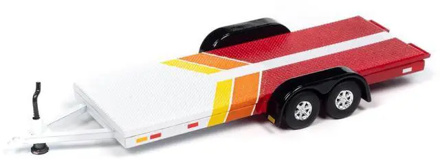 Brand new 1/64 scale diecast car model of 1980 Toyota Land Cruiser Pickup Truck White and Red with Stripes and Open Car Trailer Limited Edition "Tow & Go" Series die cast model car by Johnny Lightning.