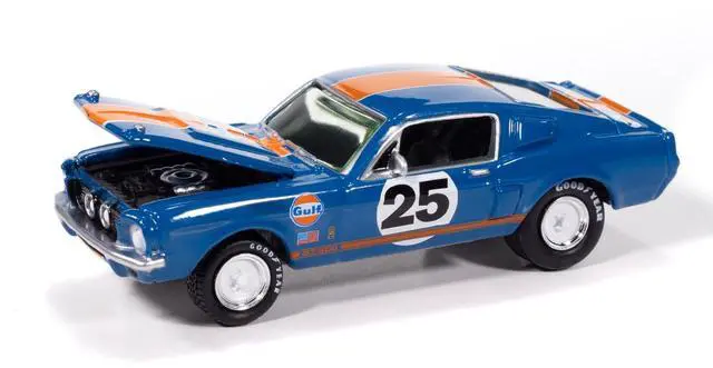 2) 1967 Shelby GT-500 #25 "Gulf Oil" Dark Blue with Orange Stripes.