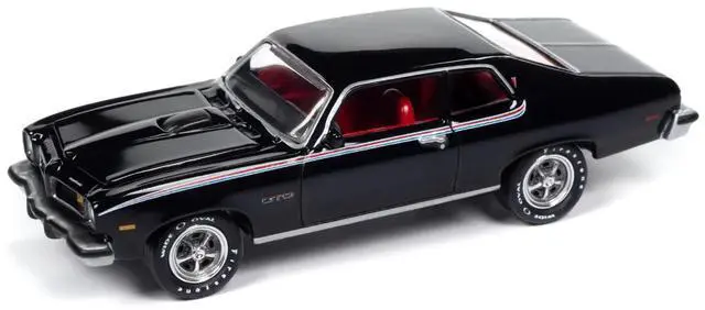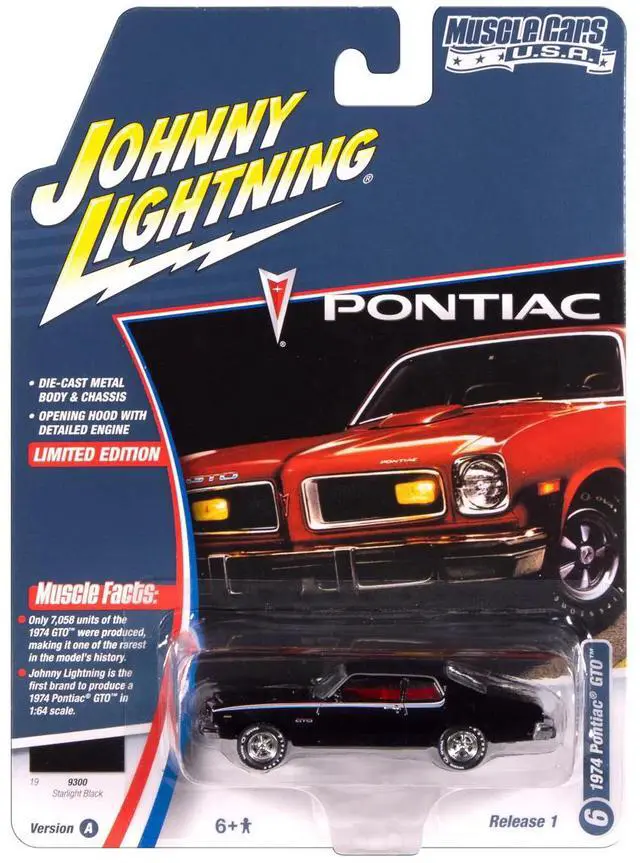 Brand new 1/64 scale diecast car model of 1974 Pontiac GTO Starlight Black with Red Interior "Muscle Cars USA" Series die cast model car by Johnny Lightning.