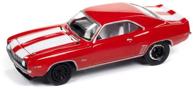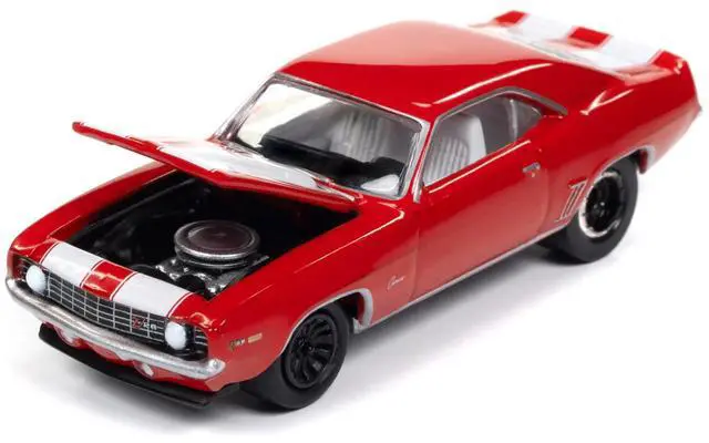 Brand new 1/64 scale diecast car model of 1969 Chevrolet Camaro Z28 Red with White Stripes and Interior "Muscle Cars USA" Series die cast model car by Johnny Lightning.