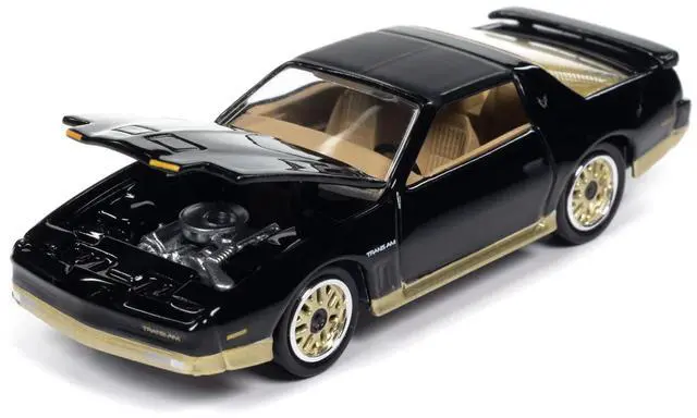 Brand new 1/64 scale diecast car model of 1986 Pontiac Firebird T/A Black with Champagne Gold Accents "Muscle Cars USA" Series die cast model car by Johnny Lightning.