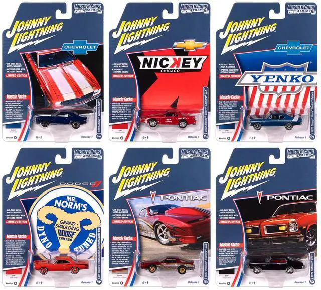 Brand new 1/64 scale diecast car models of "Muscle Cars USA" 2025 Release 1 Set A of 6 pieces die cast model cars by Johnny Lightning.