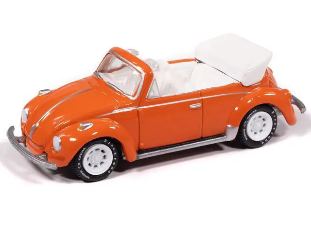 6) 1975 Volkswagen Super Beetle Convertible Pumpkin Orange with White Interior.