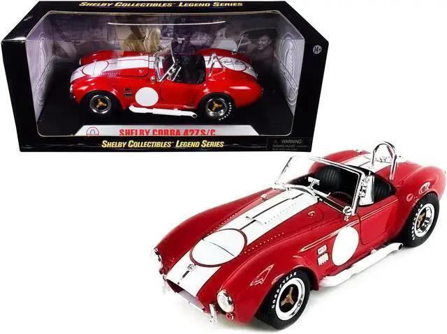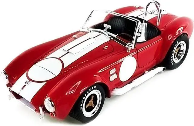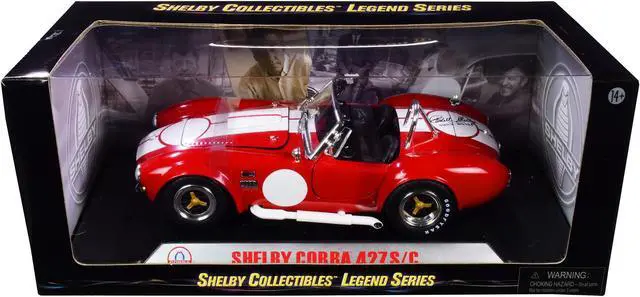 Brand new 1/18 scale diecast car model of 1965 Shelby Cobra 427 S/C Red with White Stripes with Printed Carroll Shelby's Signature on the Trunk die cast model car by Shelby Collectibles.