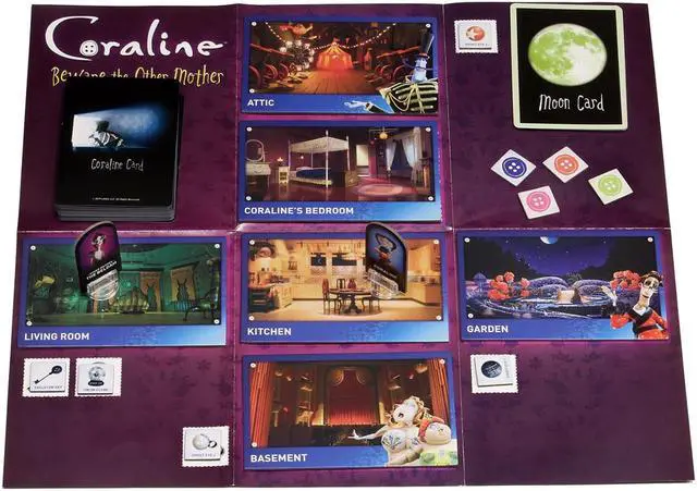 Coraline: Beware the Other Mother is a cooperative card game for 1-4 players, based on the beloved stop motion animated film from director Henry Selick, best-selling author Neil Gaiman, and acclaimed animation studio LAIKA. It tells the haunting tale of a young girl’s journey to an alternate version of her life, and her heroic return to reality. Now, you can bring this iconic story to your tabletop!