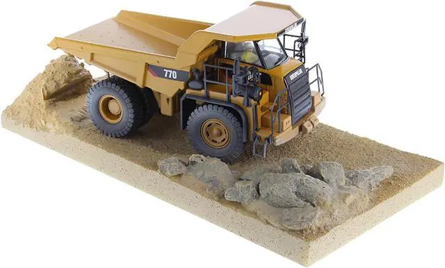 Brand new 1/50 scale diecast model of CAT Caterpillar 770 Off-Highway Truck Yellow (Weathered) with Operator "Weathered" Series die cast model by Diecast Masters.