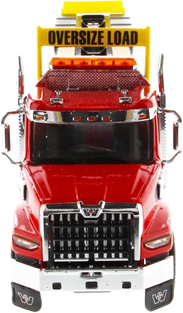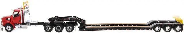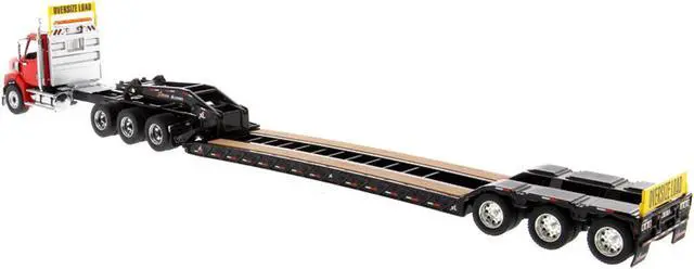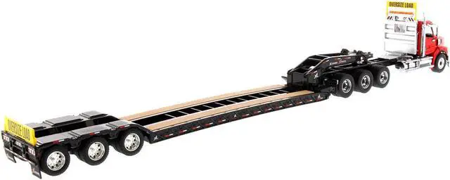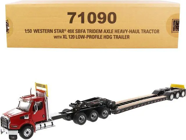 Brand new 1/50 scale diecast model of Western Star 49X SBFA Tridem Axle Heavy-Haul Tractor with XL 120 Low-Profile HDG Trailer Red and Black "Transport Series" die cast model by Diecast Masters.