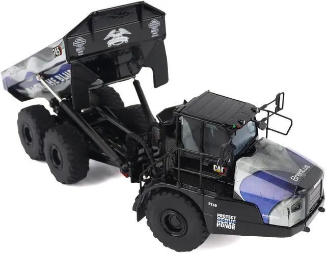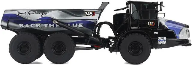 Brand new 1/50 scale diecast model of CAT Caterpillar 745 Articulated Dump Truck "Brent Scarbrough & Co. - Back the Blue" Black with Graphics "High Line" Series die cast model by Diecast Masters.