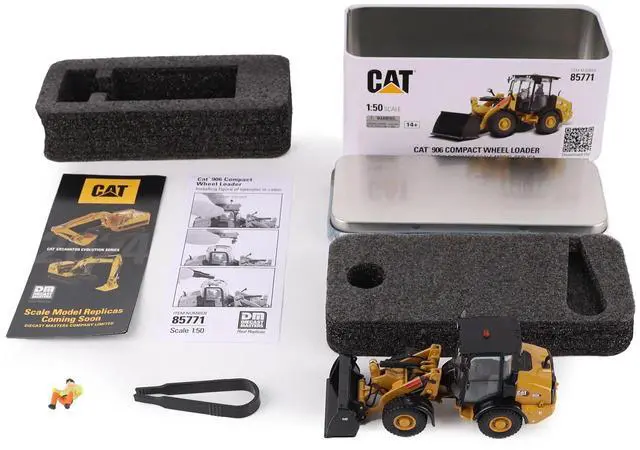 Brand new 1/50 scale diecast model of CAT Caterpillar 906 Compact Wheel Loader Yellow with Operator "High Line Series" die cast model by Diecast Masters.