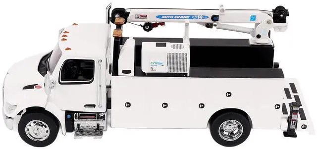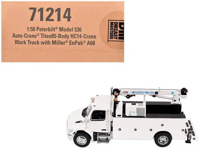 Brand new 1/50 scale diecast model of Peterbilt 536 Auto-Crane Titan85-Body HC14-Crane Work Truck with Miller EnPak White "Transport Series" die cast model by Diecast Masters.